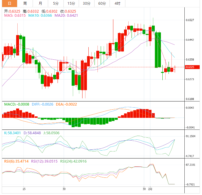 周五盘中,纽元兑美元上涨至0.6327,涨幅0.01%。 基本面上,中国国家统计局()公佈的1月份消费者价格指数(CI)数据弱于预期,纽元/美元已大幅跌破0.6320。中国通胀年率录得2.1%,低于预期2.2%,但高于前值1.8%。中国通胀月率录得0.8%,而预期为0.7%。新西兰是中国的主要贸易伙伴之一,中国通胀疲弱将迫使政府出台更
