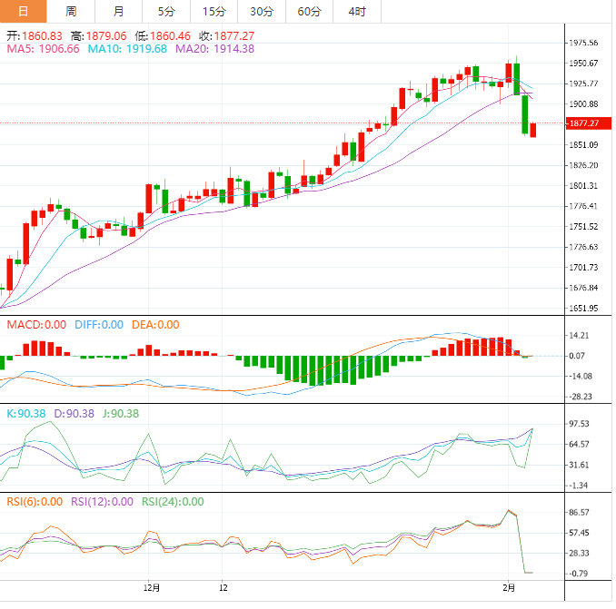 周一盘中,现货黄金震荡反弹,目前交投于1877美元/盎司附近,上周五美国非农数据表现强劲,I非制造业I也非常靓丽,美元指数大涨,金价大幅走弱,周一金价一度跌至1860关口附近,但由于短线跌幅较大,金价在短短两个交易日下跌近100美元,在守住1860关口后,部分空头获利了结;鉴于俄乌地缘局势紧张,大国局势也出现
