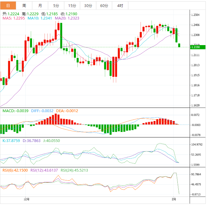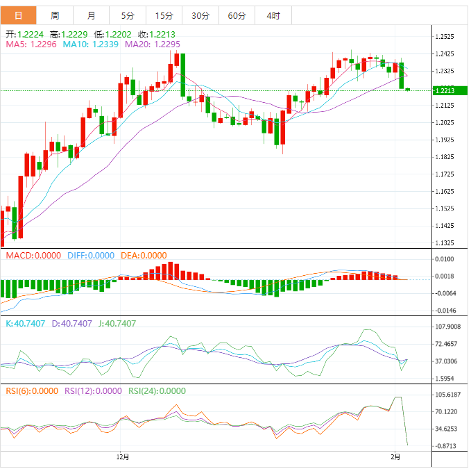 周五盘中,英镑兑美元下跌至1.2193,跌幅0.27%。 英镑基本面:英镑兑美元的直线下跌行情止步于1.2200的整数水平支撑位。由于美元指数即将升破短期阻力位101.55,英镑看跌倾向依然强烈。周四英国央行加息50个基点引发英镑大跌。在利率指引中,英国央行行长贝利确认将进一步加息,通胀压力依然为两位数。该央行宣布连续