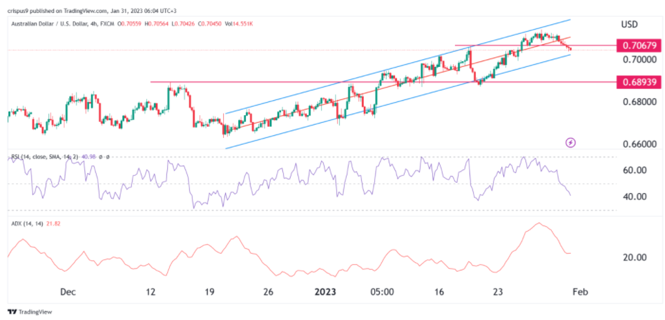 澳元兑美元回落,主要催化剂是即将发布的美国消费者信心数据、美联储决定和非农就业数据。澳元兑美元周二报0.7043,比年初以来的高点0.7142低了几个点。 澳元兑美元基本面综述 澳大利亚12月零售销售大跌打压澳元下跌。此外美元温和走强成为施压澳元兑美元下行的另一个因素。市场情绪持续谨慎促使部分避险资金流向