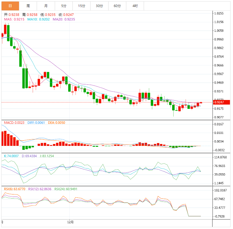 周二盘中,美元兑瑞郎上涨至0.9249,涨幅0.04%。 基本面上,美元/瑞郎经过三日上涨之后多头难以继续佔上风,该货币对在周二早盘下跌至0.9240,录得四日来首日下跌。汇价回撤指向1月6日以来的先前阻力线。 技术面上,美元兑瑞郎突破了0.9240,并稳定在该水平之上,激活了盘中的积极情景,为向0.9335这一主要目标前
