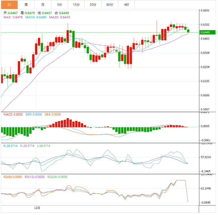 周二盘中,纽元/美元正在测试日线低点0.6448,纽元/美元日线下跌0.26%。 基本面上,新西兰新任总理克里斯·希普金斯宣佈内阁改组,拖累纽元/美元小幅下跌。新西兰总理希普金斯再度提出任命格兰特·罗伯逊担任财政部长。 技术面上,纽元兑美元明显突破了看涨通道的支撑线,并在盘中转向下跌,目标是访问0.6365,随