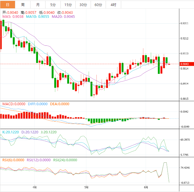 周三亚洲时段,美元兑瑞郎盘中缺乏任何坚定的方向性偏见,在一个狭窄的交易区间震荡,整个亚洲交易时段略低于0.9000的中段。 美元仍然处于守势,略高于周二触及的5月17日以来的最低水平,这被视为美元兑瑞郎汇率的一个关键阻力因素。周二公布的最新美国消费者通胀数据再次证实了人们的押注,即美联储将在本周三