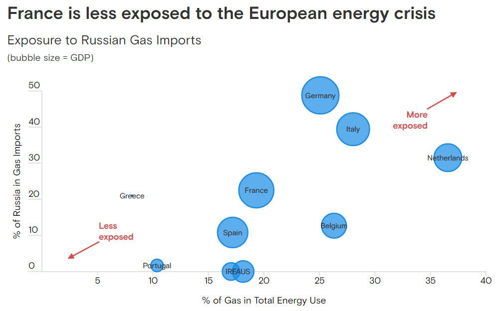 尽管面临俄罗斯入侵乌克兰、供应链中断和能源价格上涨等一系列挑战,但法国经济在2022年的大部分时间里仍能保持增长。高盛研究公司的一份新报告预测,美国将经历一段时间的疲软,但勉强避免衰退。 实际结果是好是坏取决于未来几个月G研究人员将关注的三个主题: 能源与经济 与其他欧洲国家相比,法国受欧洲大