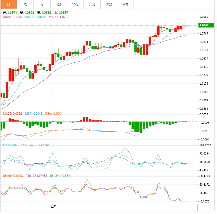 周二盘中,欧元兑美元上涨至1.0868,涨幅0.01%。 欧元基本面:周二,标准普尔全球研究发布的最新制造业活动调查显示,欧元区制造业低迷情况在1月份进一步缓解。欧元区1月制造业採购经理人指数(I)初值录得48.8,预期48.5,前值47.8。该指标触及5个月高点。欧元区经济强国-德国的1月制造业採购经理人指数(I)录