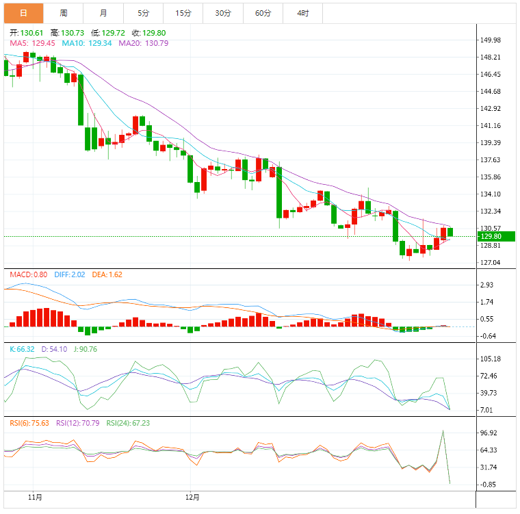 周二盘中,美元兑日元下跌至129.82,跌幅0.64%。 基本面上,美元/日元逐步整理至130.15附近。由于投资者恢复风险偏好,美元/日元出现整理。标普500指数期货亚市早盘收复跌幅,风险偏好有所增强。有关日本央行行长人选的消息甚嚣尘上,美元/日元维持较大波动。 技术面上,美元兑日元提供了新的积极交易,突破了图表