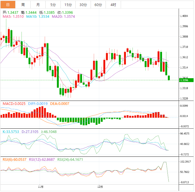 周一盘中,纽元兑美元上涨至0.6401,涨幅0.87%。 基本面上,纽元/美元从日低点上涨了100个点,目前交易于0.6290,维持强劲的看涨基调。在高于预期的非农就业报告发布后,美元转为下行。然后短暂回升,在I12月服务业报告显示跌幅大于预期后,美元再度下行。美国国债收益率暴跌,10年期国债收益率从3.75%跌至3.61%,