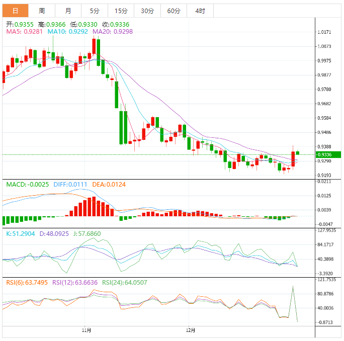 周三亚洲交易时段,美元兑瑞郎在0.9350附近显示出区间波动。在美联储12月会议纪要和周三的瑞士消费者价格指数公布后,投资者可能会做出明智的决定,瑞士法郎资产已变得黯淡无光。 与此同时,风险状况为负面,因为投资者似乎不愿将资金投入标准普尔500指数等风险感知较强的资产。美元指数在两周高点104.40附近徘徊。