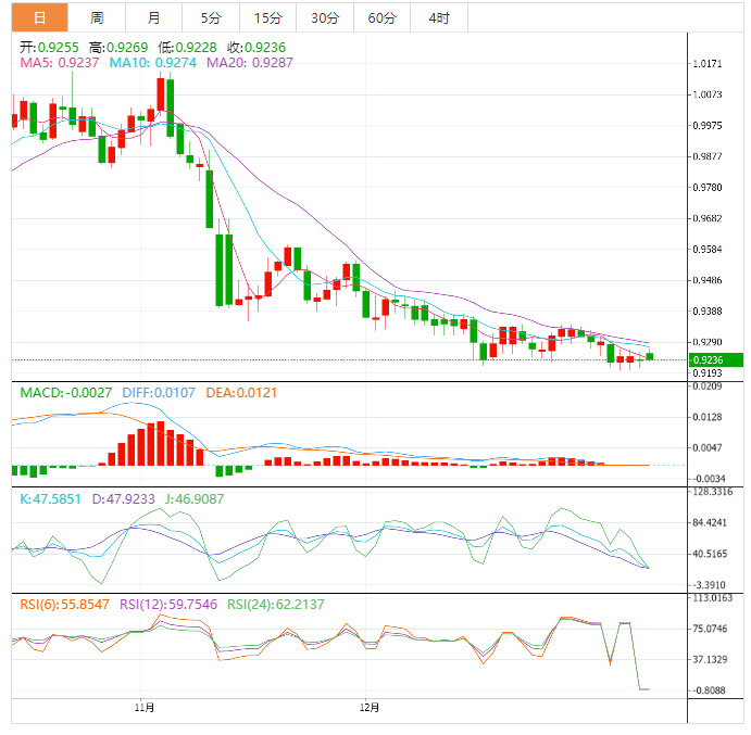周二盘中,瑞士法郎反弹至0.9200附近,在2023年新年前夕,北美市场见证了流动性较弱的情况。因此,美国和瑞士经济数据的缺乏让交易员们受制于市场情绪和技术面。目前,美元/瑞郎的交易价格为0.9236。 美元兑瑞郎技术展望 日线图显示该货币对有下行偏见,但似乎也已在0.9200附近触底。自去年12月以来,美元/瑞