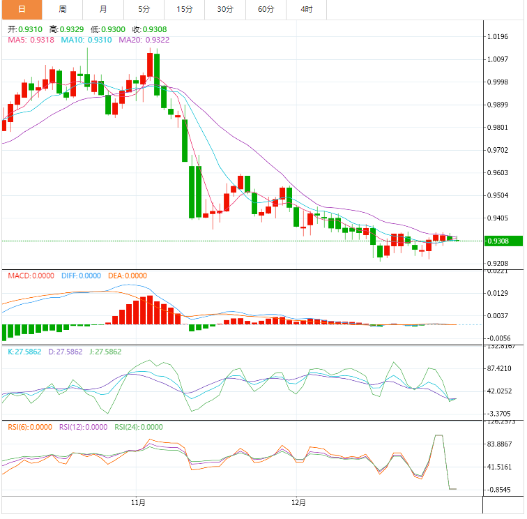 周二,美元/瑞郎处在0.9310-0.9330区间,延续上周五震荡走势。尽管汇市情绪积极,但瑞郎货币对仍维持在关键支撑位0.9300附近。截至发稿时,美元/瑞郎试图突破0.9330这一关键关口时遇到阻力。 基本面上,美元指数震荡于104.00附近,并显示出波动率收缩的迹象。全球市场维持假日情绪,导致交易活动清淡,预期美元指数将