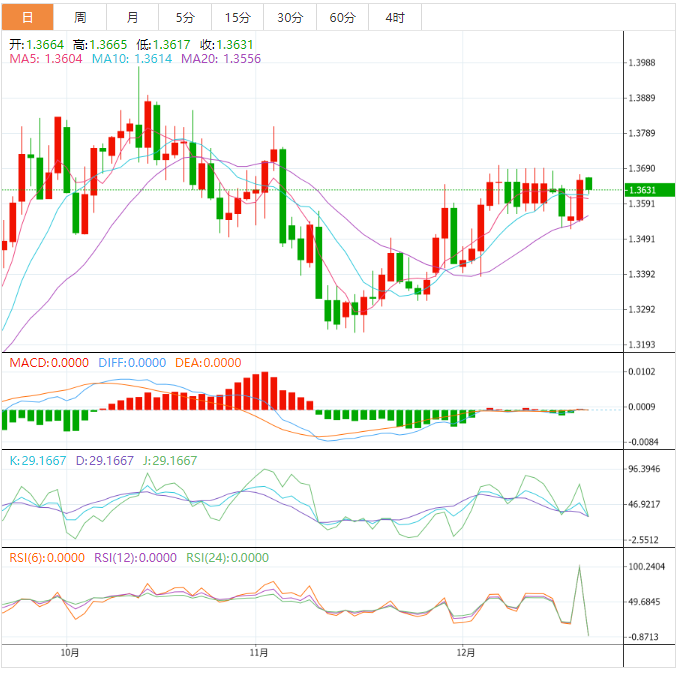美元兑加元接受卖出价,刷新盘中低点1.3630左右,收复上周五早盘的失地。美元兑加元出现三周以来最大涨幅,原因是美元全面走强,而加拿大主要出口商品WTI原油价格走软。然而,早盘主要数据/事件的缺席以及美国12月活动数据之前的谨慎情绪似乎引发了该指数的最新回调。 美元指数出现10周以来最大涨幅,原因是全球央行