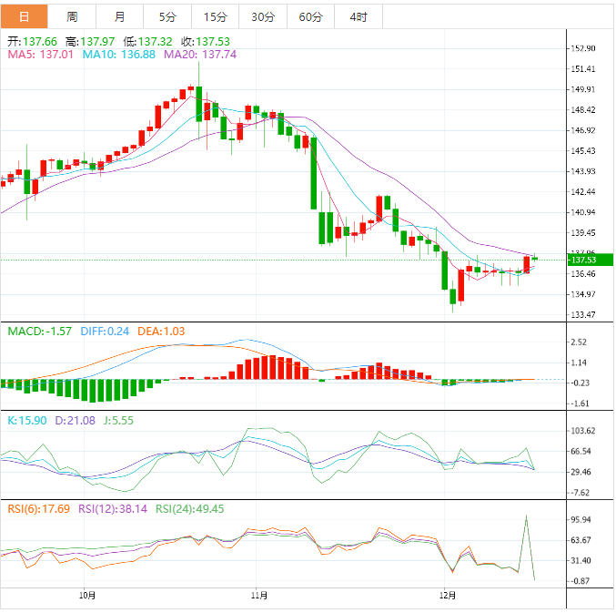 周二盘中,美元兑日元下跌至137.53,跌幅0.10%。 基本面上,美元/日元在亚市刷新数日高点后于欧市早盘逐步走高至137.70附近,缺乏方向。汇价最新徘徊可能与缺乏重要数据/事件以及美国11月消费者物价指数(CI)公佈之前市场情绪谨慎有关。应该要注意的是,围绕日本央行下一步行动的担忧不一且美债收益率疲软也限制了