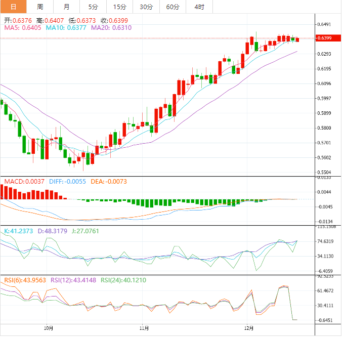 周二盘中,纽元兑美元上涨至0.6402,涨幅0.30%。 基本面上,纽元/美元盘中上涨,有望温和上涨至0.6395附近。在这期间,投资者关注11月美国消费者价格指数,纽元/美元整理于一周内最大的单日跌幅附近。期权市场晴雨指标即风险逆转率更为坚挺也支持纽元/美元最新上涨势头。值得注意的是,风险逆转率是显示看涨期权和看
