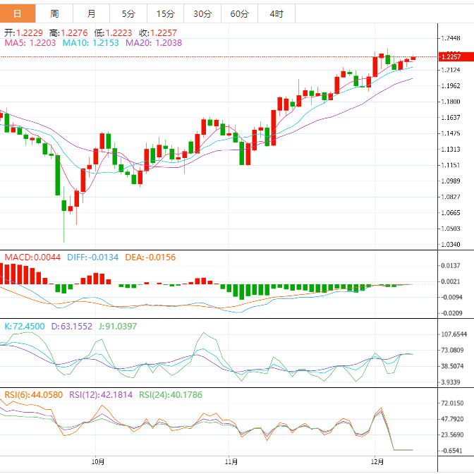周五盘中,美元指数下跌至104.59,跌幅0.20%;欧元兑美元上涨至1.0572,涨幅0.13%;英镑兑美元上涨至1.2261,涨幅0.21%;美元兑日元下跌至136.10,跌幅0.38%;澳元兑美元上涨至0.6779,涨幅0.10%。 英镑兑美元展望:在下周的利率决议前,前景尚不明朗 英镑兑美元连续第三天走高,并在周五早些时候稳步攀升至其每周