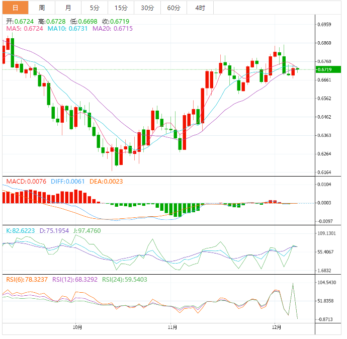 澳元兑美元在0.6720附近的盘中低点附近保持压力,在周四早些时候几乎没有注意到澳元的数据。不仅澳大利亚的贸易数据不佳,澳大利亚储备银行(RA)季度公报和风险催化剂的好坏参半的评论也限制了澳元对的近期走势。 澳元兑美元汇率走势基本面解读 也就是说,澳大利亚10月份贸易平衡改善至122.17亿美元,高于预期的11