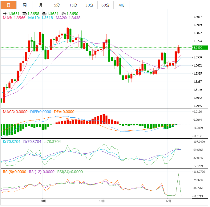 周三盘中,美元兑加元上涨至1.3661,涨幅0.08%。 加元基本面:美元/加元继录得三连涨后多头获得喘息,汇价试图明确方向,整理于月线高位1.3650附近。在这期间,加拿大央行货币政策会议之前,美元/加元的波动反映出市场维持焦虑。基本面良莠不齐使得在大规模押注美元/加元方向之前应保持谨慎。交易员也可能倾向于观望