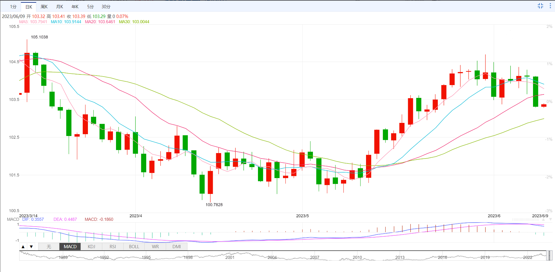 周五亚洲市场早盘,美元指数受到美国经济数据低迷的影响,美元指数仍在103.30附近承压。值得注意的是,在美国联邦公开市场委员会货币政策会议即将召开之际,美国的统计数据不断打压美联储的鹰派,美元对6个主要货币的汇率指数在前一天出现了两个月来的最大跌幅。 也就是说,截至6月2日当周,美国首次申请失业救济人数