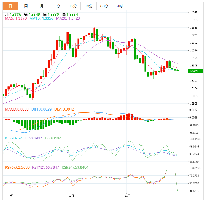 美元兑加元的走势就像另一个典型的周五走势一样上下颠倒。在经历了从1.3320下方的反弹后,美元兑加元正在1.3340附近挣扎。由于它经过了各种各样的筛选,目前还不能说出现了看涨逆转。毫无疑问,由于感恩节,交易活动较低,但市场情绪仍然稳固。 由于经济日历清淡,美元指数未来没有任何潜在的触发因素。然而,美