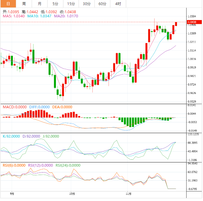 欧元兑美元回吐盘中在周顶部附近的涨幅,在周四亚洲交易时段,欧元兑美元接近1.0400。这对主要货币的最新回调可能与市场对冠状病毒的担忧以及美国感恩节假期造成的盘整有关。 欧元区经济活动数据乐观欧元买盘充满希望 欧洲中央银行(C)副行长路易斯·德金多斯3日表示:“欧元区第四季度很有可能出现负增长。”这位