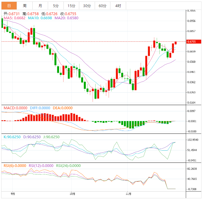 澳元兑美元的买入价在周四早盘刷新了0.6755附近的周顶,因买家对为期三天的上行趋势感到高兴。 在此过程中,澳元对庆祝了前一天突破50移动均线和11月17日开始向下倾斜的趋势线,分别接近0.6690和0.6620。 让该货币对买家保持希望的还有,在看涨的ACD信号中,该货币对将持续突破10月底的前一个阻力线以及200-移动
