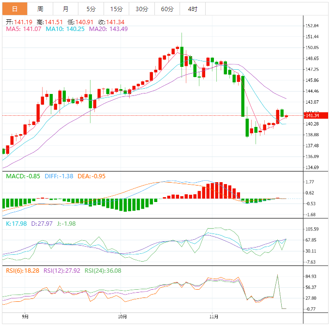 周三盘中,美元兑日元上涨至141.34,涨幅0.10%。 基本面上,美元/日元难以延续前一天突破100日移动均线的势头,并在周二迎来新的卖盘。在北美市场早盘,该货币对仍然处于低迷状态,儘管从141.00关口附近,也就是日低点,反弹了几个点。日本央行(akofJaa)迄今没有表现出加息的倾向。事实上,日本央行行长黑田东彦(