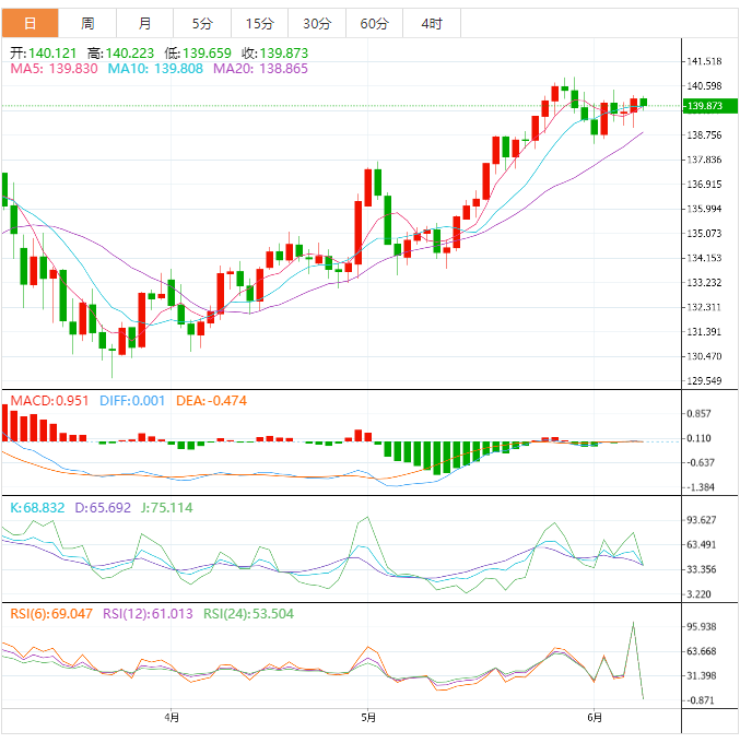 周四盘中,美元兑日元下跌至139.89,跌幅0.17%。 基本面上,美元/日元试图继隔夜从139.00关口即周线低点大幅反弹的势头后获利回吐,遇到一些供应。美元/日元目前交易在139.85附近,当天下跌近0.20%,但似乎难以实现明显反弹。市场预期日本央行会采取更大规模的干预措施以支持本国货币,且市场情绪谨慎,有利于避险盘