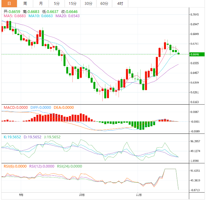 周一盘中,澳元兑美元下跌至0.6636,跌幅0.49%。 澳元基本面:澳元兑美元跌至0.6640附近。由于美元指数进一步上涨,该资产在0.6720附近遇阻后下跌。美元指数在107.38刷新周高点,后市料进一步上涨。澳大利亚公佈的就业数据积极,令澳储行乐见。据澳大利亚统计局的数据,澳大利亚新增就业人数3.22万人,而此前市场普遍