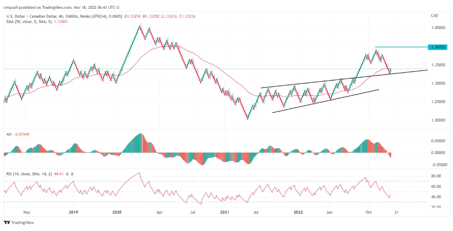 由于投资者对美国和加拿大近期的通胀数据有所反应,美元兑加元的价格周五维持在窄幅区间。美元兑加元汇率报1.3318,远低于上月的高点1.3972。该价格略高于本月低点1.3230。 美国和加拿大的通胀数据 在加拿大通胀数据符合分析师预期后,美元兑加元汇率仍处于盘整阶段。统计局公布的数据显示,通货膨胀同比上涨6.9%