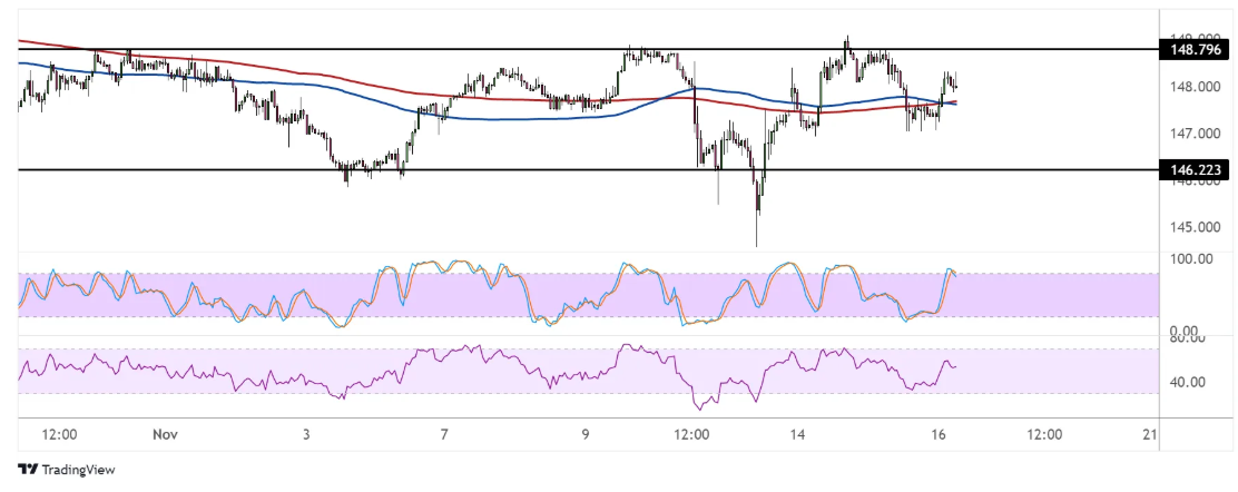 本月大部分时间里,瑞郎兑日元一直在横盘移动,在146.25处找到支撑位,在149.00主要心理关口附近找到阻力位。该货币对刚刚反弹出区间阻力位,可能会再次下跌至支撑位。 日本和瑞士经济的重要数据都不多,因此这两项数据可能暂时维持在区间内。日本央行或日本财务省的汇市干预仍存在风险,因为这可能像以前那样引发进
