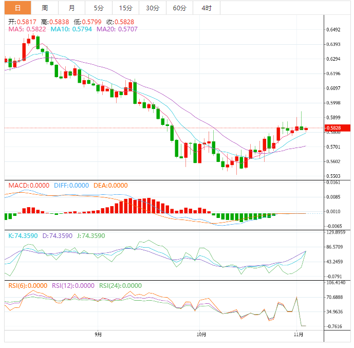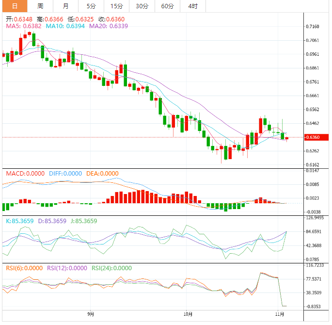 周四早盘,中国I数据下行,但澳元兑美元仍在盘中高位0.6360附近震荡。原因可能与昨日早些时候公布的澳元贸易数据,以及美元巩固美联储推动的涨势有关。 澳元兑美元汇率走势基本面解读 中国10月份财新服务业采购经理人指数(CaixirvicI)降至5个月来的最低水平,从此前的49.3降至48.4。 当天早些时候,澳