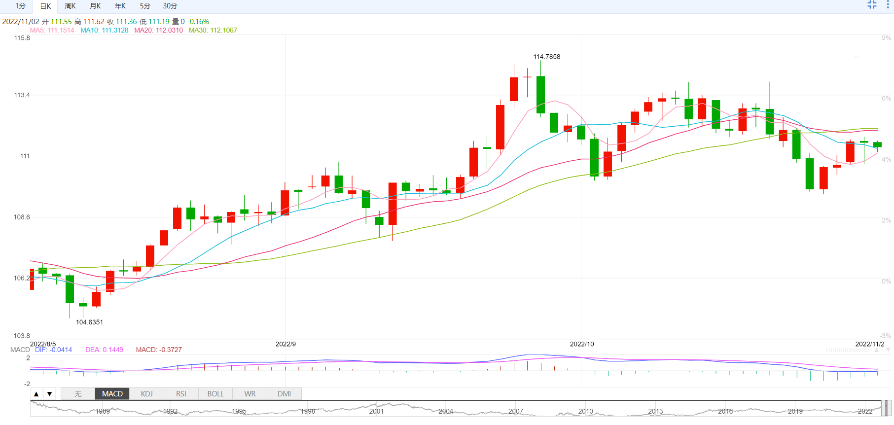 今日外汇市场走势分析 周四亚洲时段,美元指数微跌,目前交投于111.88附近。美元在周三重拾升势,此前美联储主席鲍威尔表示,讨论暂停加息以对抗不断上涨的消费者价格还为时过早,因为“没有感觉到通胀正在下降”。 美联储在为期两天的政策制定者会议后,连续第四次将其关键贷款利率提高了75个基点。市场最初将美