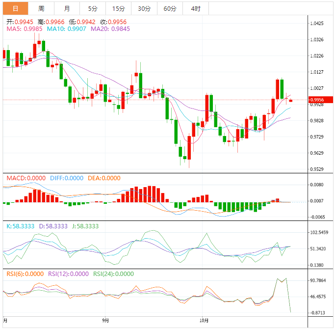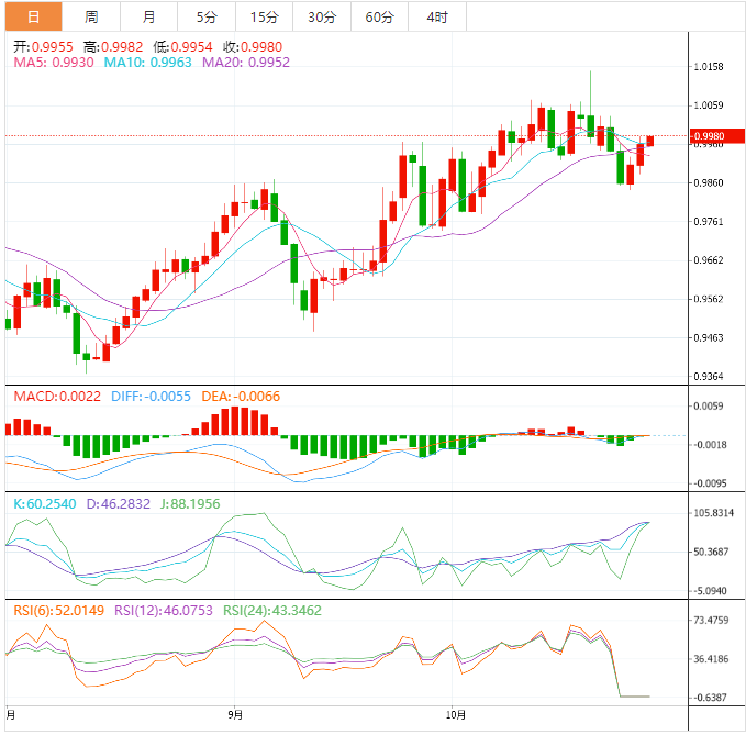 周一盘中,美元兑瑞郎上涨至0.9983,涨幅0.21%。 基本面上,美元/瑞郎试图突破0.9980阻力后遇到抛压。市场维持风险偏好,美元/瑞郎低迷,遇到阻力。另外10年期美债收益率处在关键支撑4%上方。瑞郎方面,投资者正关注9月份实际零售销售数据。9月份实际零售销售年率预期3.3%,高于前值3.0%。值得注意的是,零售销售数据