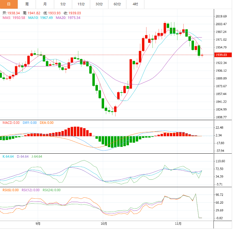 黄金市场行情分析 周一(11月13日)亚市盘中,现货黄金继续承压,金价现报1940美元/盎司附近。金价上周五从约1960美元/盎司的日内高点大幅回落。在60分钟走势图中,黄金价格完成从下行通道的向下突破。周二(11月14日)将迎来10月CI报告,进一步影响市场对于美联储2023年后的动向预期。 黄金市场消息汇总 华尔街