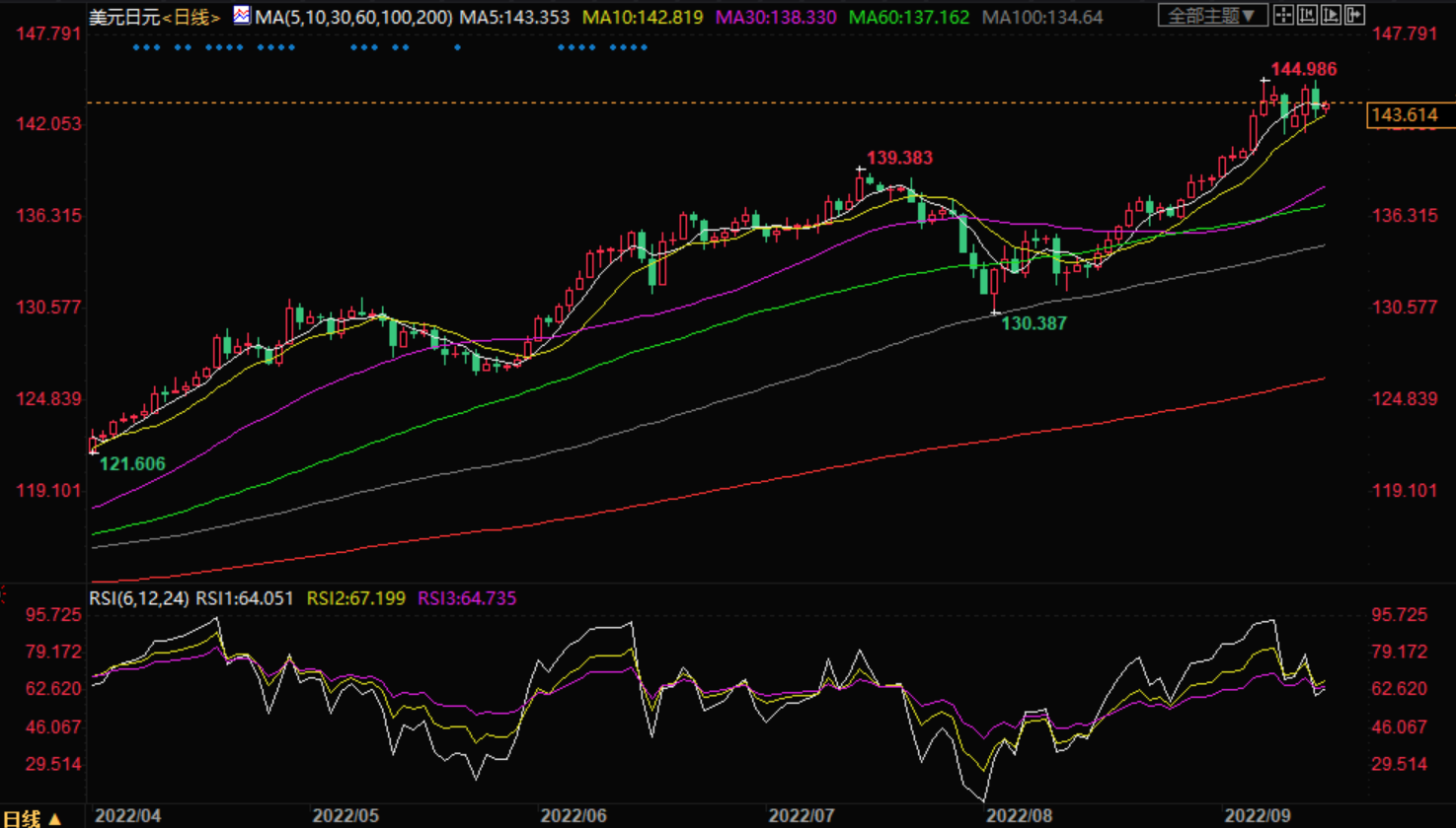 周四盘中,美元指数上涨至109.87,涨幅0.20%;欧元兑美元下跌至0.9962,跌幅0.17%;英镑兑美元下跌至1.1511,跌幅0.24%;美元兑日元上涨至143.60,涨幅0.31%;澳元兑美元下跌至0.6746,跌幅0.01%。 美元大涨还没结束? 交易员和分析师表示,美元正在创下1984年以来最佳年度表现,并将进一步扩大战果,这暗示其他地