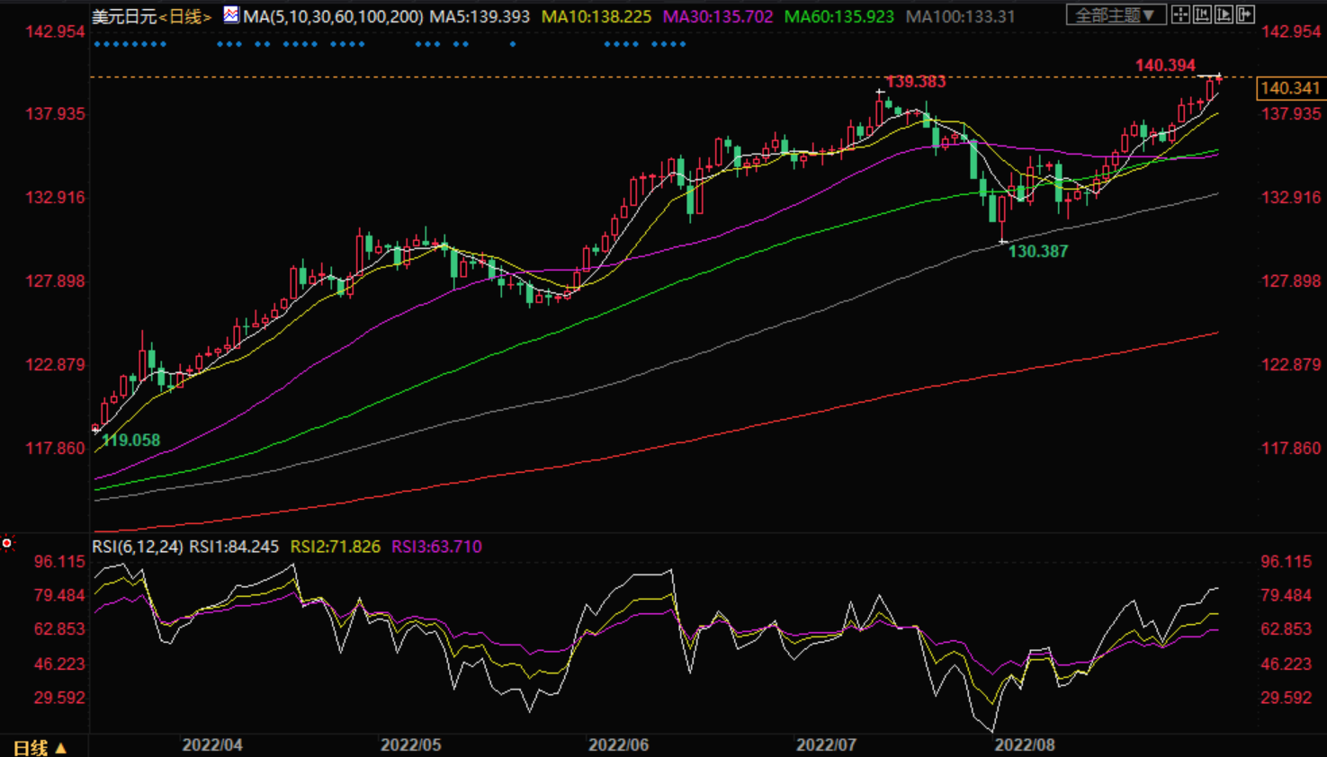 周五,美元/日元终于收复心理阻力位140.00并处在阻力上方。大级别周期来看美元/日元出现强劲反弹,并刷新24年高点140.27。 基本面上,日本财务大臣铃木俊一周五表示,如有必要将对汇率波动问题采取措施。美元/日元最新交投于140.11,当日下跌0.06%,结束跌破该水平的短暂跌势。继美元/日元出现1998年以来最大波动后日