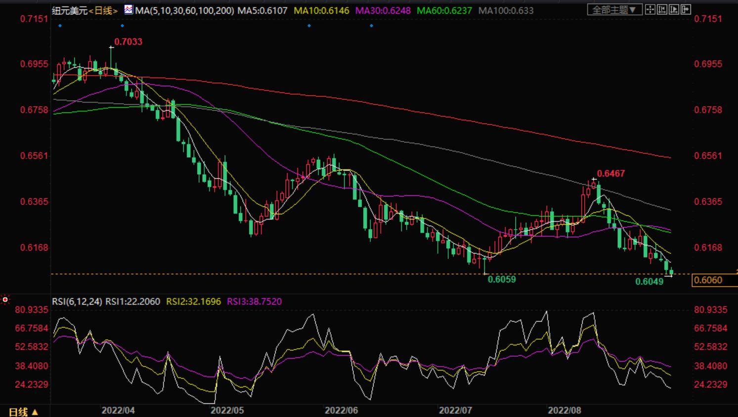 周五盘中,纽元兑美元回调至0.6070。在这期间,纽元/美元自20小时均线回调,同时处在短线看跌通道内。 基本面上,市场似乎相信美联储将坚持其激进的政策收紧之路并一直定价该央行在9月加息75个基点。近期多位美联储官员的鹰派讲话确认了该押注,依然支持美国国债收益率进一步上升。事实上,对加息预期高度敏感的2年期