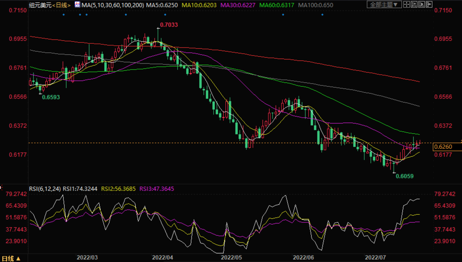 周二盘中,纽元/美元上涨,自低位0.6214涨至高位0.6279后,当日上涨0.27%。周一美元兑一篮子货币和主要货币对承压,因投资者离场观望。 基本面上,据路透社,新西兰联储行长阿德里安·奥尔周二表示,正在对近期实施的货币政策表现展开审查。审查将评估与职权范围内概述目标相关的通货膨胀和就业指标,以及根据制定时