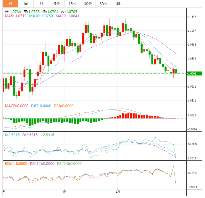 美元指数刷新日内低点104.00附近,同时在周三早间保持了前一日从多日高点的回调。美元兑六种主要货币指数在从5月中旬以来的最高水平回落后,连续第二天下跌,并在周二结束了五日上涨趋势。 美元最近的疲软可能与市场的担忧有关,即尽管违约迫在眉睫,但美国政策制定者将阻止国会通过美国债务上限协议。美国数据和月末