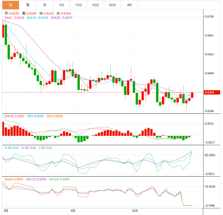 澳元连续第三个交易日上涨,在从年度低点反弹后,延续了周一的涨势。由于美元走弱,澳元兑美元继续上涨,这可能归因于周五美国公布的经济数据。此外,预计澳大利亚储备银行(RA)将在11月7日的会议上提高政策利率。 澳大利亚9月份的零售销售指数(o)出乎市场意料,与市场共识和之前记录的数据相比,该数据明显更高。