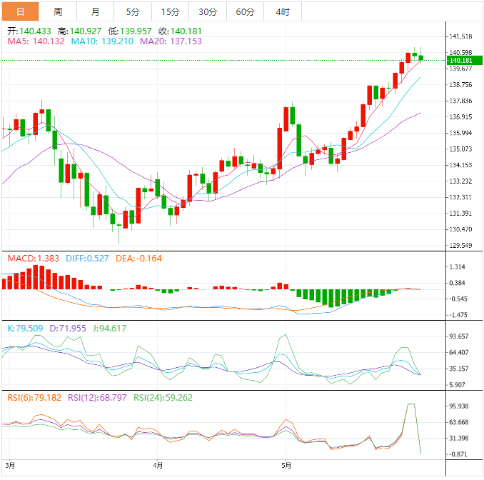 周二盘中,美元兑日元下跌至140.19,跌幅0.18%。 基本面上,美元/日元垂直跌至140.00附近。美元/日元下行受到美元指数下跌的支持。投资者减持美元/日元多头头寸,因为美国上调债务上限已经削减美元指数的吸引力,关于日本央行调整债券收益率控制曲线政策说法甚嚣尘上为日元提供了力量。 技术面上,美元兑日元继续