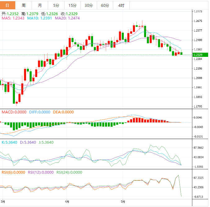 周一盘中,欧元兑美元上涨至1.0729,涨幅0.02%。 欧元基本面:欧元兑美元在1.0730附近录得五日来首日上涨。该货币对整理三个月内首次月度跌幅,同时市场对于美国决策者能够避免灾难性违约保持谨慎乐观的立常在周一德国、法国、英国和美国假期之际,月末调整也增强了该货币对的仓位调整。 欧元技术面:受随机积极因