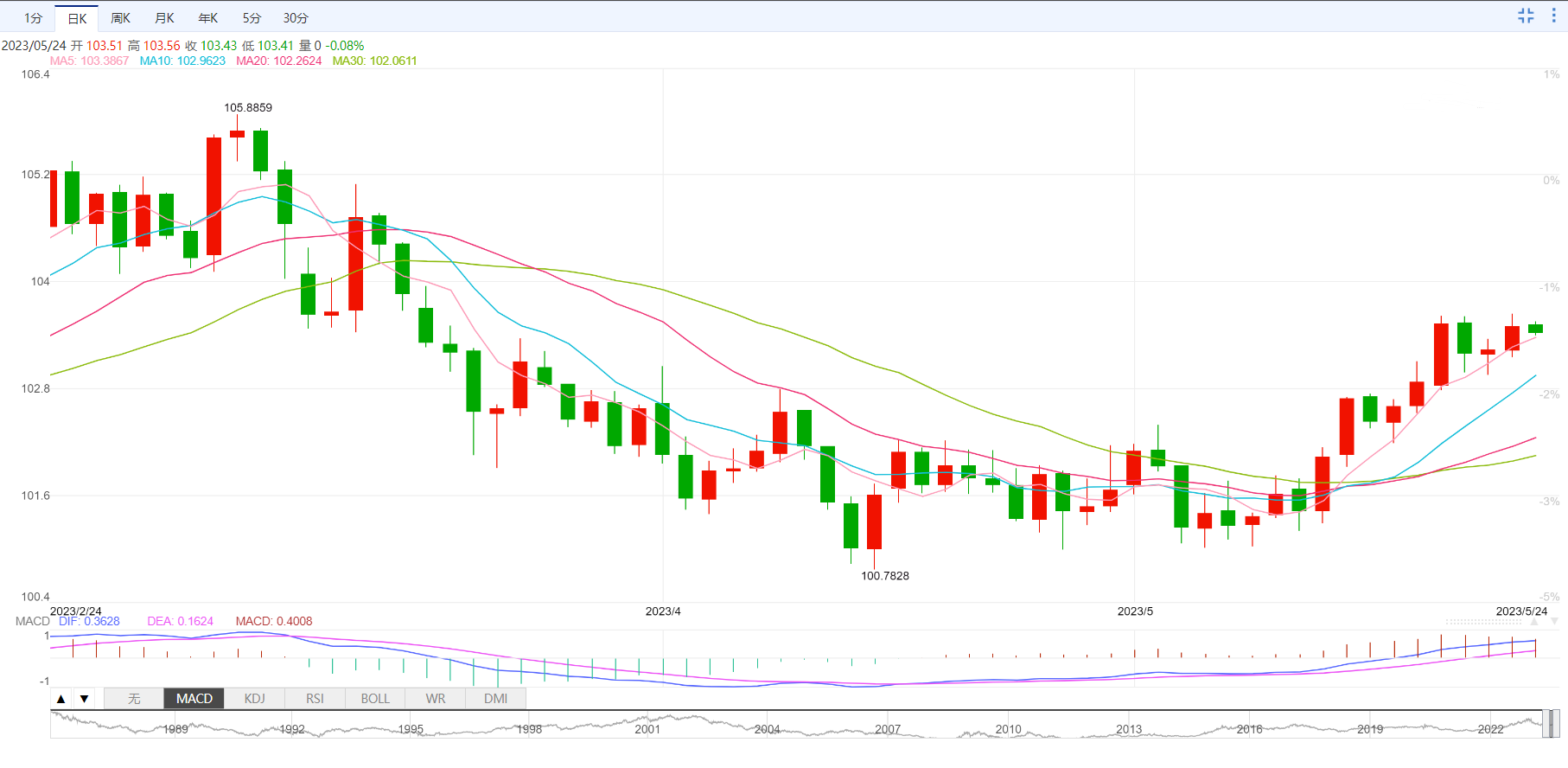 由于交易者等待最新的联邦公开市场委员会会议纪要,美元指数多头在九周高点稍作喘息,在103.50附近徘徊。对美国违约的担忧也在挑战美元兑六种主要货币的指标。然而,美联储的鹰派担忧和乐观的美国数据在周三早些时候给美元价格带来了底线。 避免美国债务上限到期的谈判缺乏进展,以及对美国可能出现“灾难性”违约的