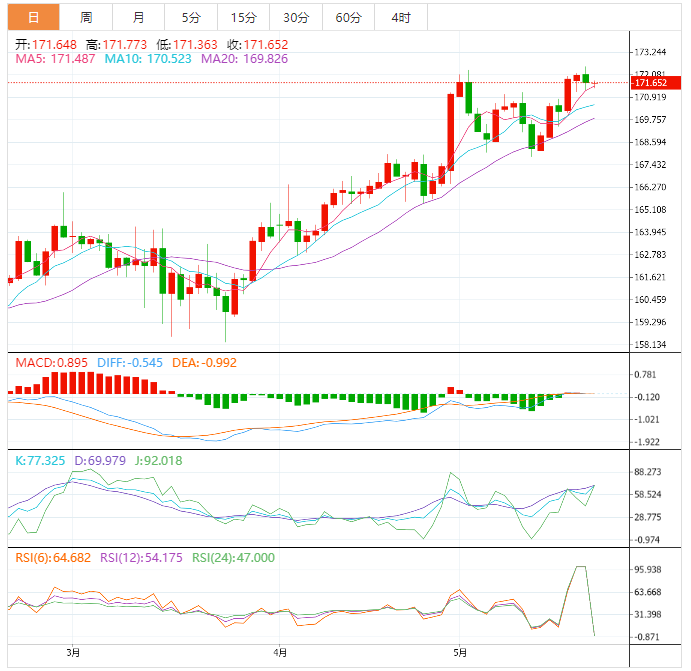 周一盘中,欧元兑美元上涨至1.0807,涨幅0.02%。 欧元基本面:上周五欧央行行长拉加德表示,需要进一步加息抑制顽固的通胀率。欧洲央行将勇敢地做出必要决议,使通胀率回到2%。欧洲央行拉加德已经确认,一次以上的加息对于缓解通胀压力是合适的。投资者应注意到,欧元区4月通胀率反弹至7%,近期食品价格下跌抑制被能