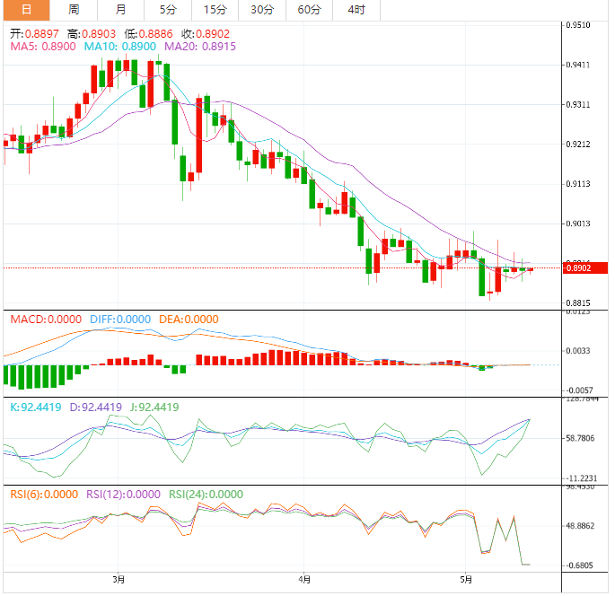 周四亚洲时段,美元兑瑞郎延续了看跌趋势,不过在美国数据显示价格小幅走低后,美元兑瑞郎似乎在今年迄今低点0.8800附近盘整。此外,瑞士央行()行长的鹰派言论受到美元/瑞郎空头的欢迎。美元兑瑞郎在0.8890附近交易。 通胀一直是周三交易的主要议题。美国劳工统计局(L)公布,4月份消费者价格指数(CI)环比
