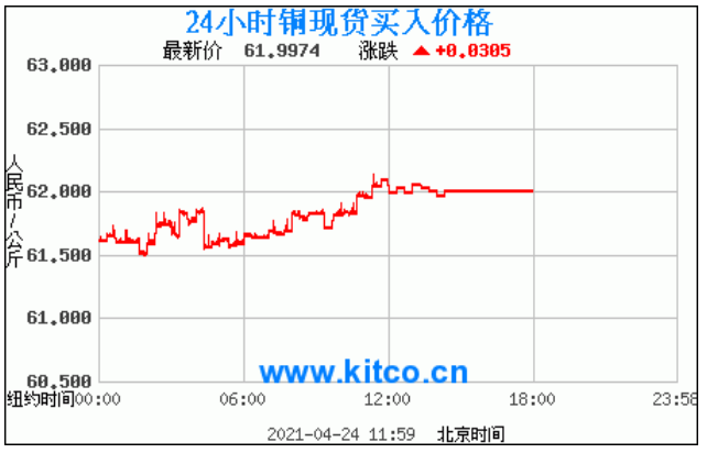 铜价格走势图今日最新铜价行情(2021年4月25日) 今日最新铜价:61.9974涨跌:0.0305 备注:以上铜价格仅供参考,请以官方价格为准。