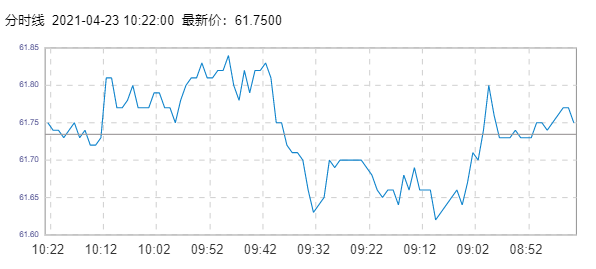 WTI原油价格实时(2021年4月23日) 名称 最新价 涨跌 涨跌幅% 开盘价 昨收价 最高价 最低价 WTI 61.75