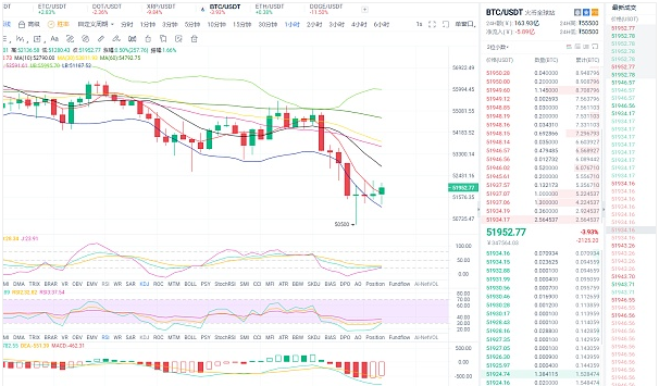 TC行情分析 昨天比特币的行情还是一样的弱势震荡,近期连续走出新低。以太坊虽然强势扛旗上涨,但是依然带动不了整个币圈,还是处于上攻乏力的状态。比特币一小时图来看,k线跌破下轨,最低回撤50500止跌反抽,现在价格回到下轨区域里运行,但布林通道呈开口走势,五日均线与十日均线均向下探底,整体趋势偏空,技术面