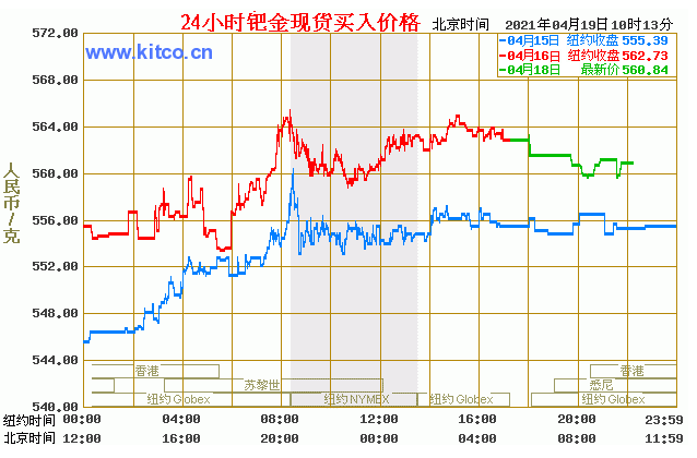 钯金价格走势图今日最新钯金行情(2021年4月19日) 今日最新钯金行情:560.84 备注:以上钯金价格仅供参考,请以官方价格为准。
