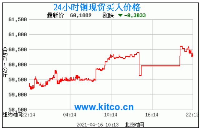 铜价格走势图今日最新铜价行情(2021年4月16日) 今日最新铜价:60.1882涨跌:-0.3033 备注:以上铜价格仅供参考,请以官方价格为准。