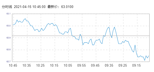 WTI原油价格实时(2021年4月15日) 名称 最新价 涨跌 涨跌幅% 开盘价 昨收价 最高价 最低价 WTI 63.07